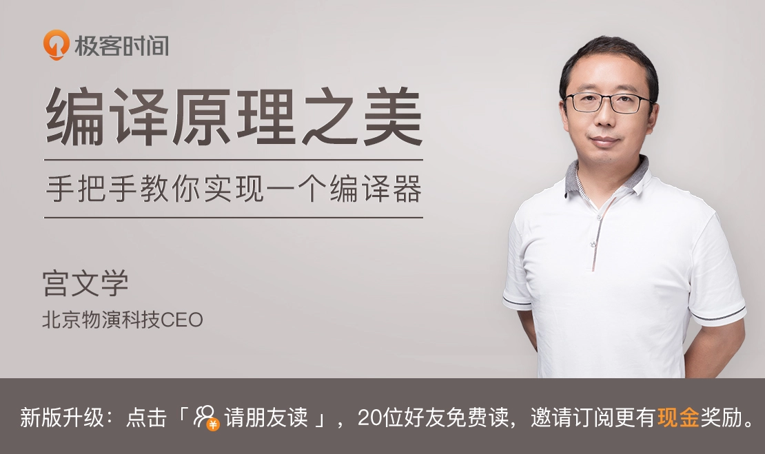 课程虽然只有30多节,但每节课绝对是干货满满。我希望这个课程能让所有有志于提升自己技术的工程师,顺利攻下编译技术这重要的一关,能够在工作中应用它见到实效,并且对编程理解更上一层。