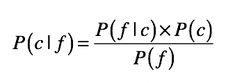 其中,c表示一个分类(class),f表示属性对应的数据字段(field)。如此一来,等号左边的P(c|f)就是待分类样本中,出现属性值f时,样本属于类别c的概率。而等号右边的P(f|c)是根据训练数据统计,得到分类c中出现属性f的概率。P©是分类c在训练数据中出现的概率,P(f)是属性f在训练样本中出现的概率。