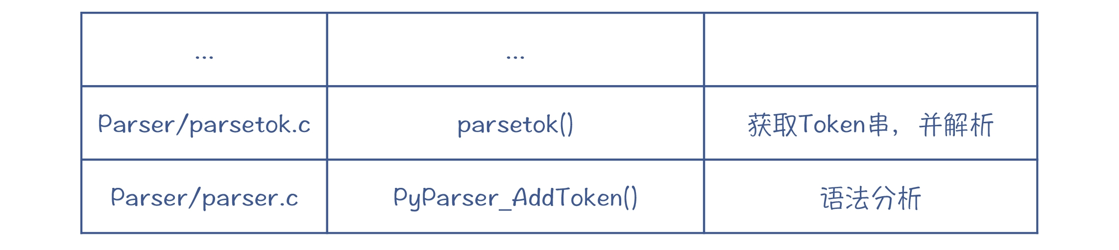 - 再之后来到Parser目录的parsetok.c文件,这个文件会调度词法分析器和语法分析器,完成语法分析过程,最后生成AST。
