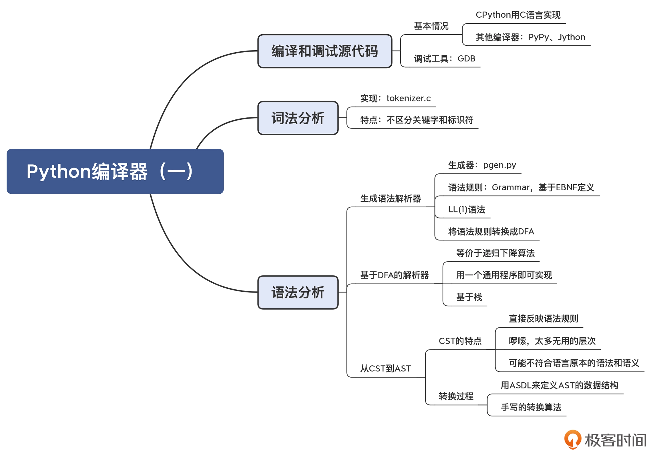 今天这一讲,我们开启了对Python编译器的探究。我想给你强调下面几个关键要点:
