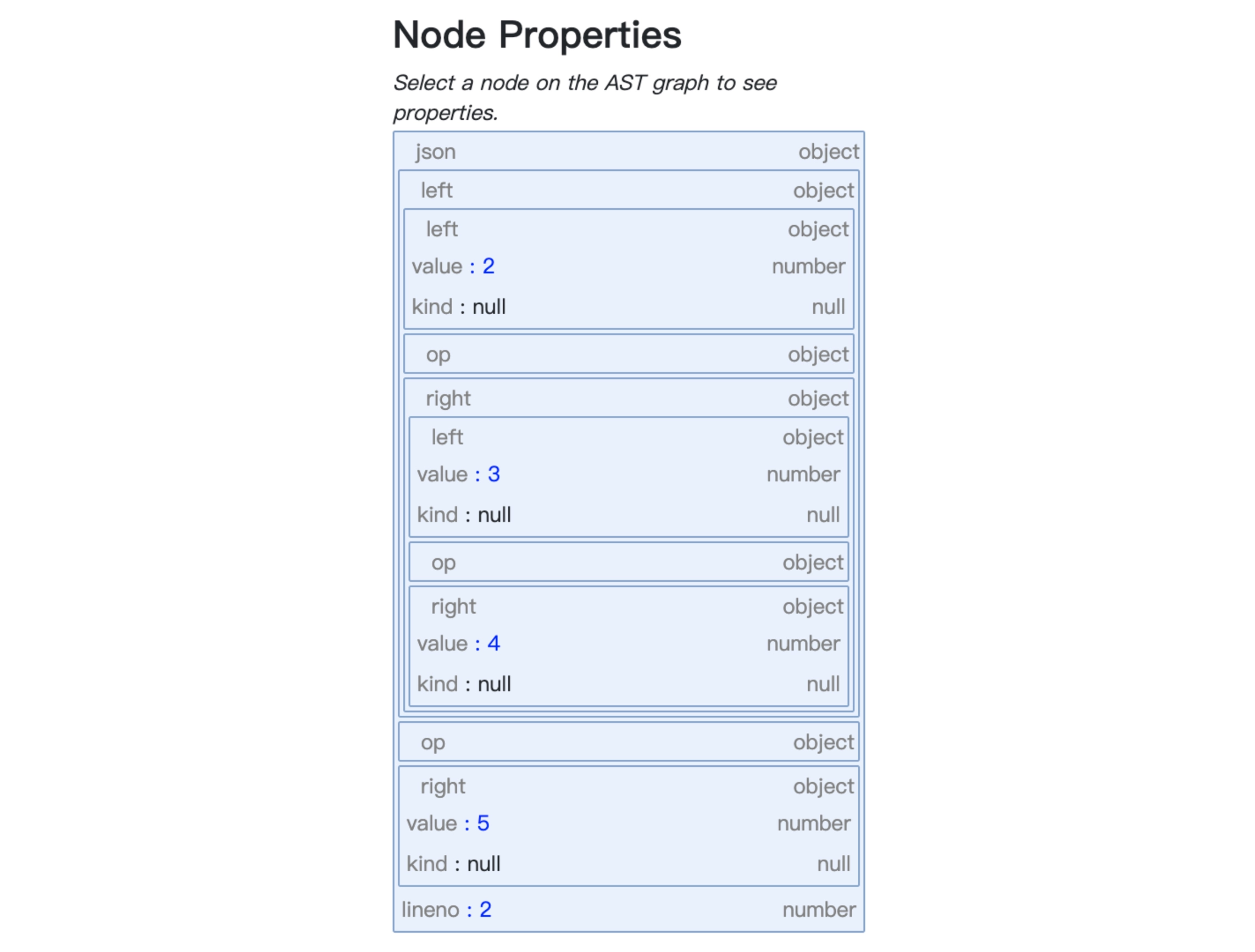 点击代表“2+3*4+5”表达式的节点,你可以看到这棵子树的各个节点的属性信息: