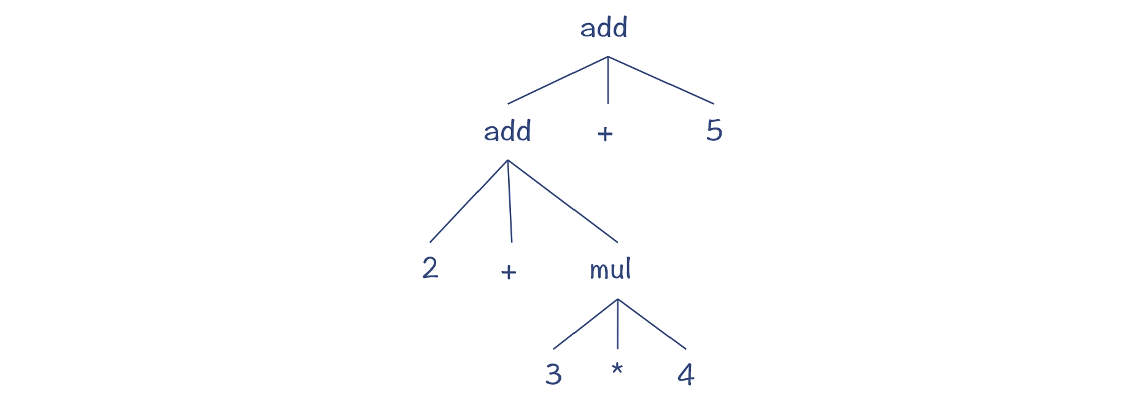首先,加法是个二元运算符,但在这里add节点下面对应了两个加法运算符,跟原来加法的语义不符。第二,很多节点都只有一个父节点,这个其实可以省略,让树结构更简洁。