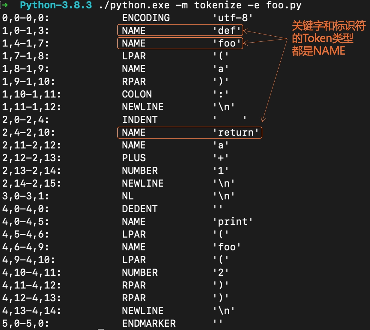 原来,Python在词法分析阶段根本没有区分这两者,只是都是作为“NAME”类型的Token来对待。