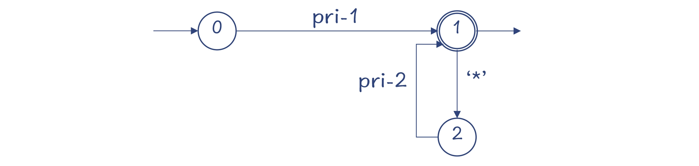 第3步,根据mul的DFA,走pri-1这条边,去匹配pri规则。这时把pri对应的DFA入栈。