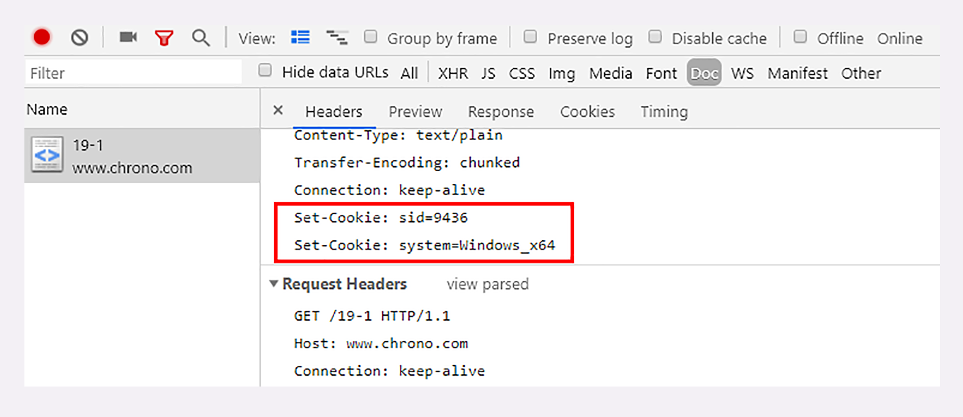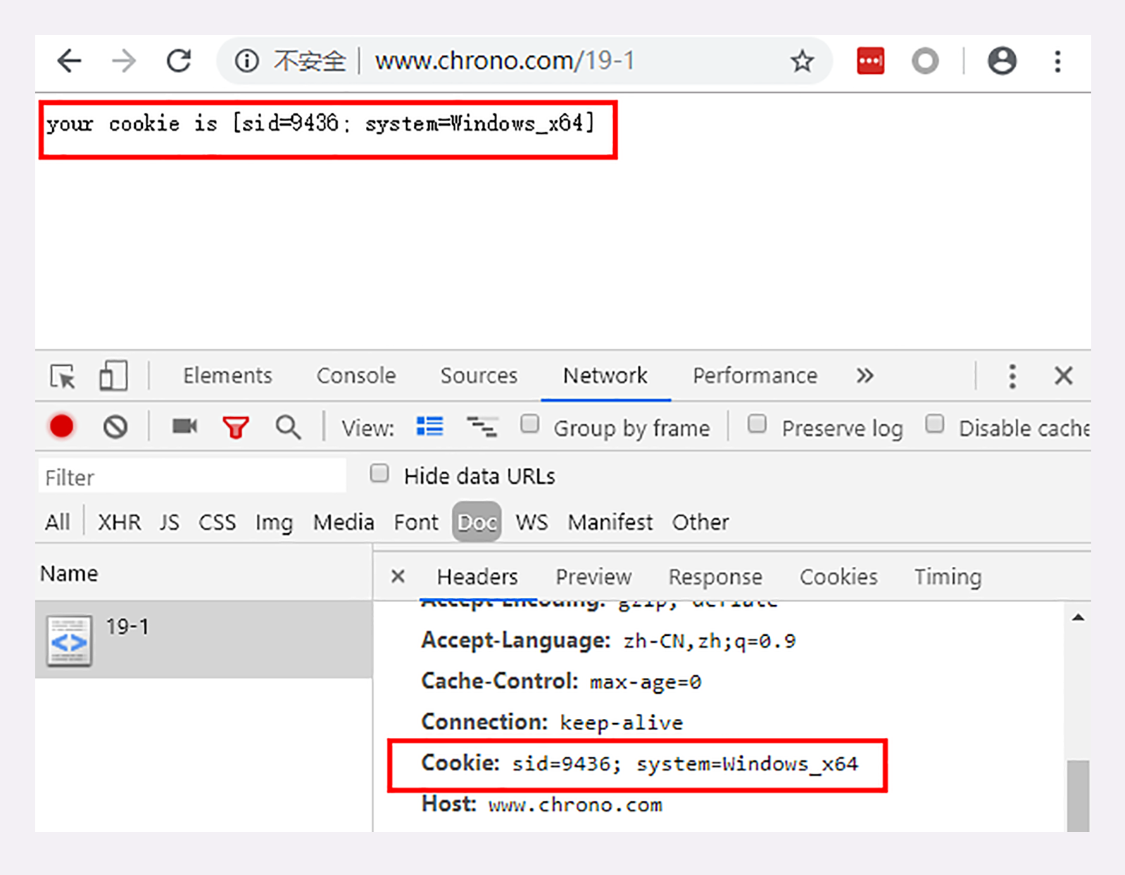 在实验环境里,你可以用Chrome访问URI“/19-1”,实地看一下Cookie工作过程。