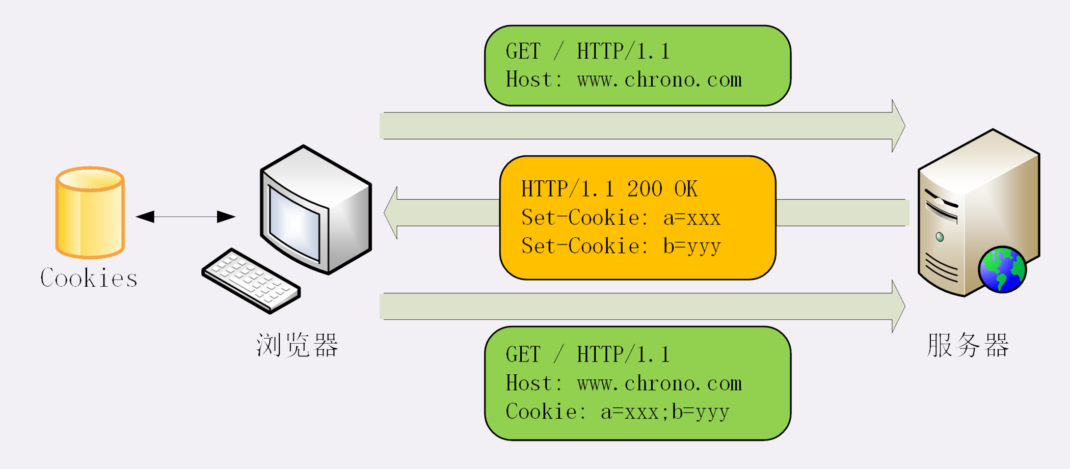 从这张图中我们也能够看到,Cookie是由浏览器负责存储的,而不是操作系统。所以,它是“浏览器绑定”的,只能在本浏览器内生效。